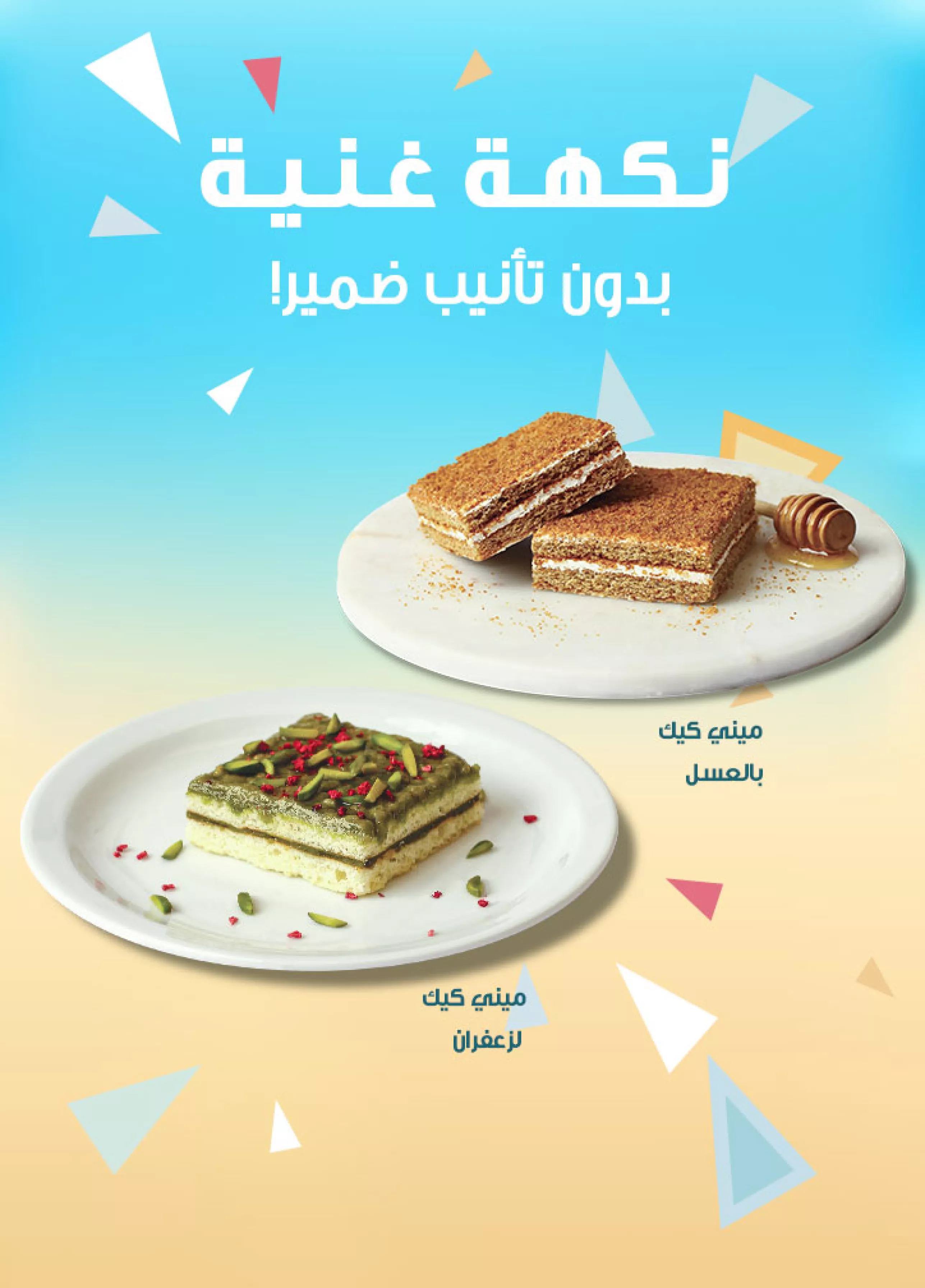 استمتع هذا الصيف يالميني كيك بالعسل و الميني كيك بالفستق الحلبي استمتع بميني كيك العسل المكونة من طبقات من الكيك الهش, و مزيج غني و كريمي من الكريمة بالعسل و القرفة, و الكراميل. تذوب في الفم مع كل قضمة. ان كنت تحب امكسرات فستكون ميني كيك بالفستق الحلبي هي الاختيار المثالي لك. خفيفة, هشة و شهية مع بعض من القرمشة المثالية لهذا الصيف. طبقات من كيك الفانيليا و كريمة الفستق الحلبي الغنية و يعلوها قطع من الفستق الحلبي المقرمش و التوت المجفف.