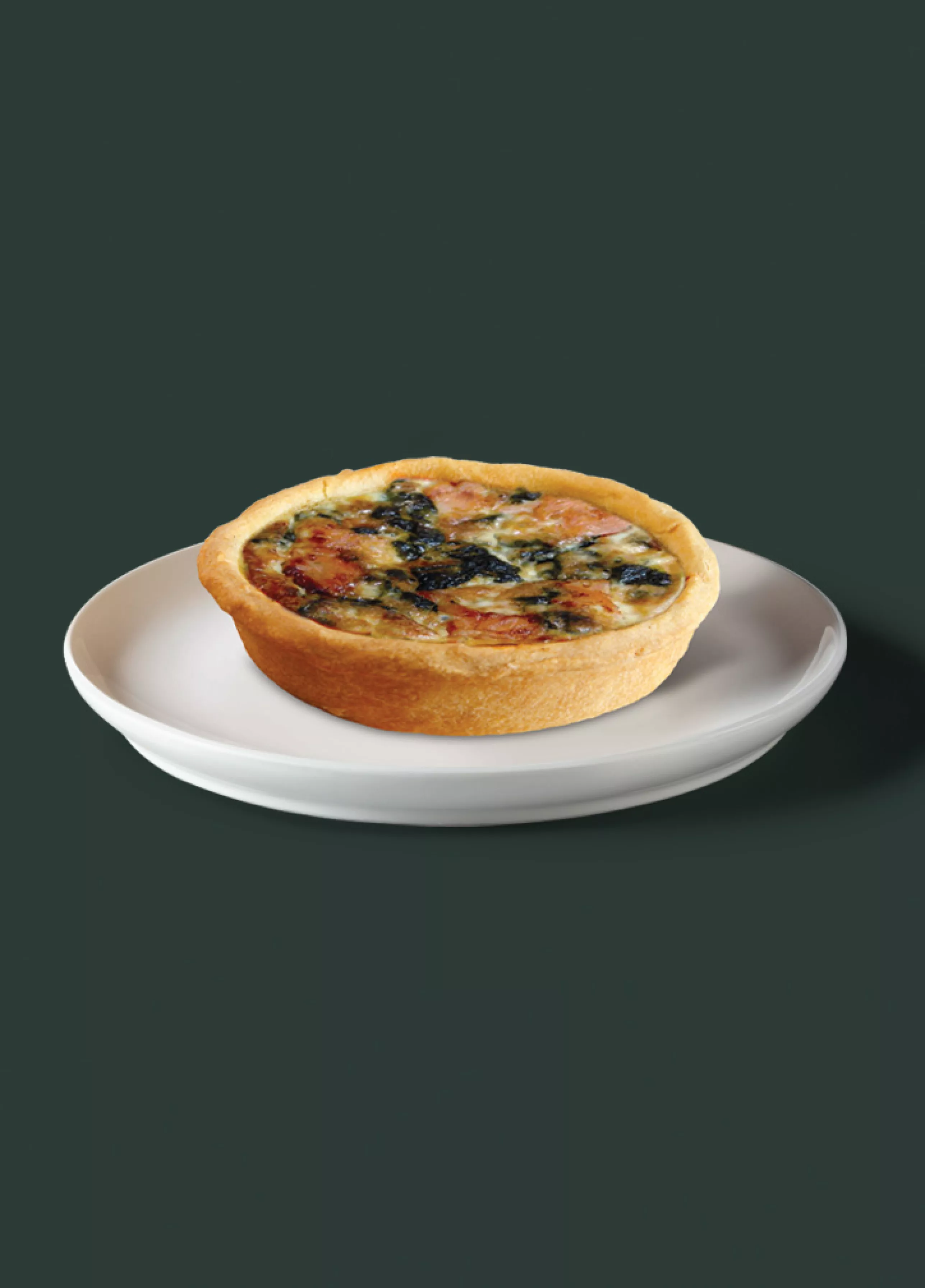 Tarte salée garnie de crème de saumon et d'épinards cuite dans une croûte de tarte.